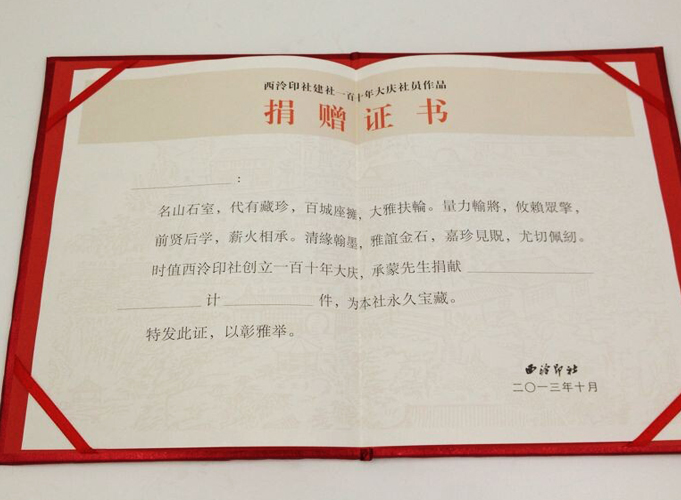 到年底了很多公司要制作很多榮譽證書或者獎狀發(fā)給員工,既然是關于榮譽的東東那制作的標準就只有一個:高、大、上。這就對一般的印刷廠家在設計、制作上有很大的挑戰(zhàn)。但是對于一個團隊非常成熟的印刷廠來說就是非常簡單的事情了。下面就給大家介紹一本西泠印社剛在我們公司做的一款證書