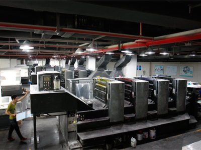 由于青色在第二組,紙張親墨性比較差,與油墨結(jié)合不牢,印上的青墨會在后兩組橡皮布上反剝下來一部分。那么單印青墨會不會印平服呢?我們將機器其余色組離壓,只印青色,結(jié)果印出的實地非常平服,于是我們調(diào)整了印刷色序,將青版放在了最后一組,印刷發(fā)花故障排除。