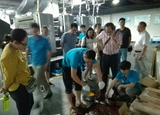 6月21日,浙江人民美術(shù)出版社組織年輕編輯到浙江海虹彩色印務(wù)有限公司現(xiàn)場(chǎng),借大型圖集《中國文化史跡》十二卷開印之機(jī),向年輕編輯講解傳授彩色、黑白圖像印刷開機(jī)時(shí)的調(diào)試看樣技巧。